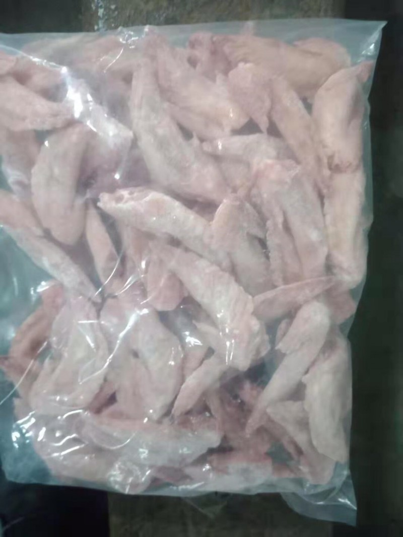 选用巴西、俄罗斯全翅切下来的,一级鸡翅尖,原始检疫,加工厂首选、规格1*10
