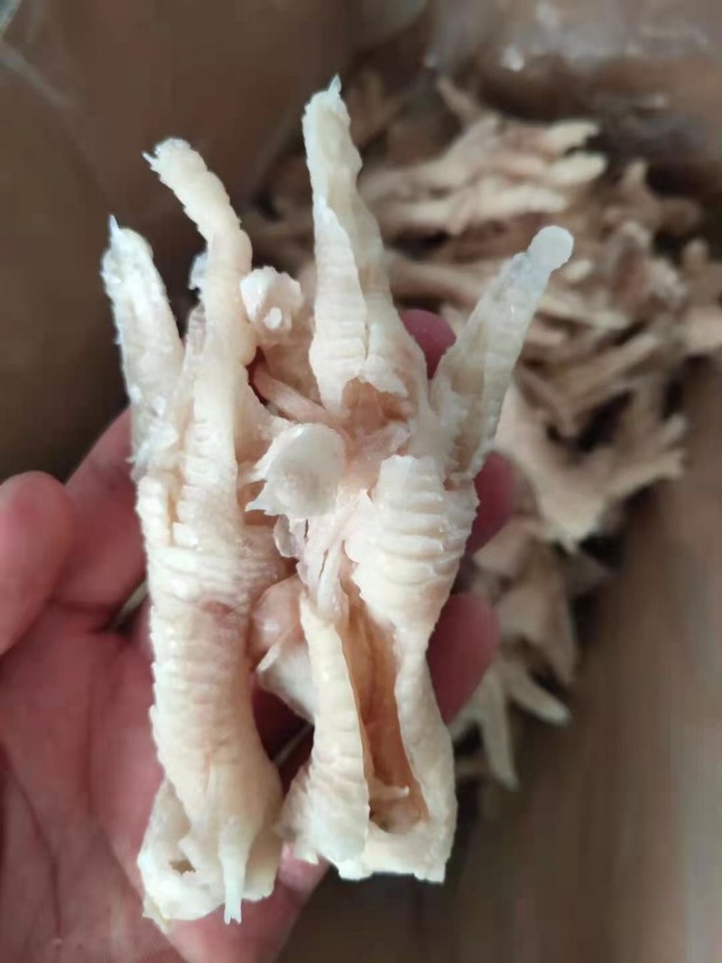 单冻脱骨鸡爪、一箱4.5kg、一箱大约145个左右、173元/箱。因为鸡爪原料变化较大,价格按当天价格为准