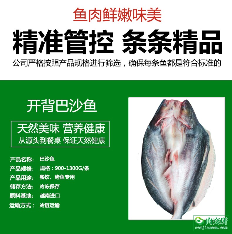 冷冻开背巴沙鱼每条都是单个独立包装,标准净重900-1300克,烤鱼餐饮专用食材。 开背巴沙鱼生长在越南生态湄公河,公司在越南有长期战略合作的代加工厂,产品规格齐全,货源稳定,厂家直销。