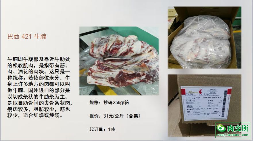 巴西421牛腩 一吨起发 有3公斤试样 要的联系