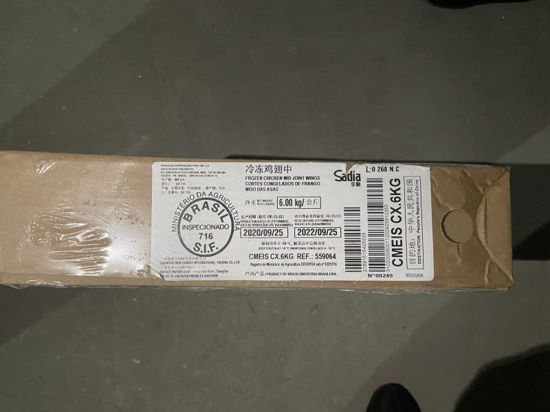 巴西716鸡中翅,均重范围30+克,每袋2KG,6袋一件,单冻,四证齐