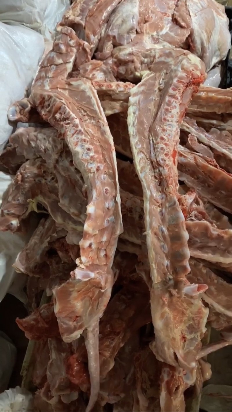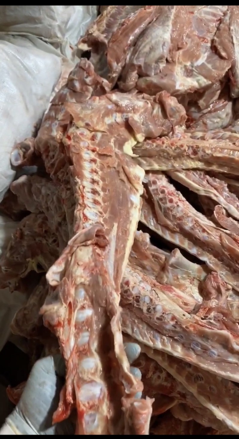 精选优质采血乳牛脊骨,自然解冻分割纯干无水。带肉率高。有意致电!