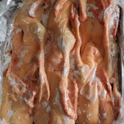 六七分熟鸭腿,修剪干净。