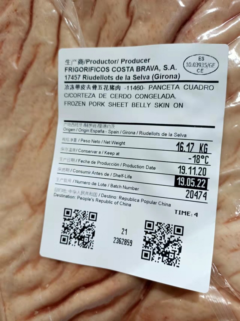 西班牙3935去皮五花肉,上海,带票。