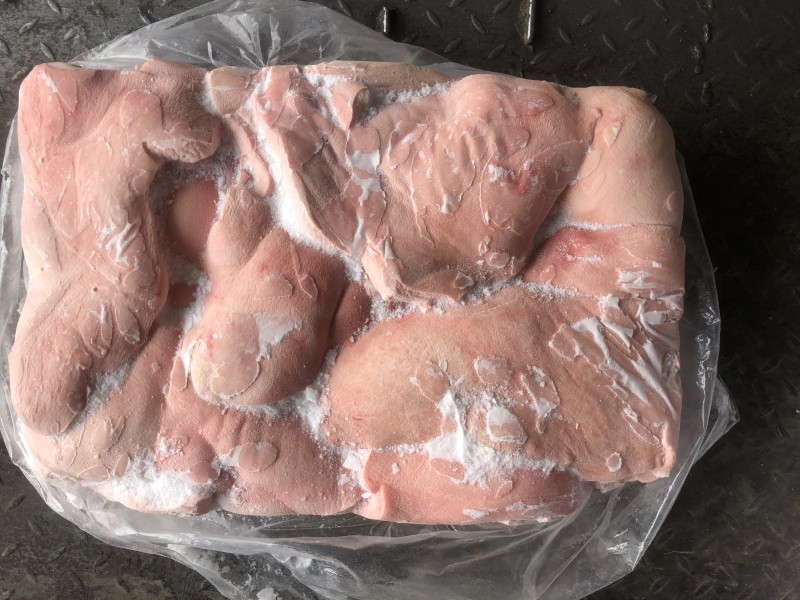 肥猪精修带皮三角槽头,单块重量1.5公斤左右,原始检疫。