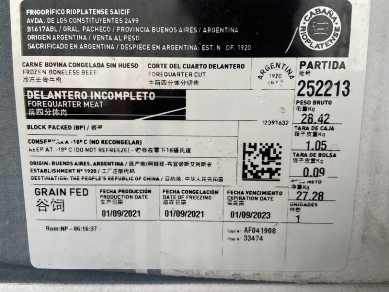 阿根廷1920谷饲牛前四分体分切肉